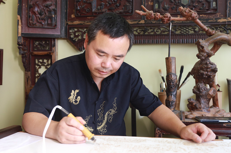 唐文林在创作宝庆烙刻作品