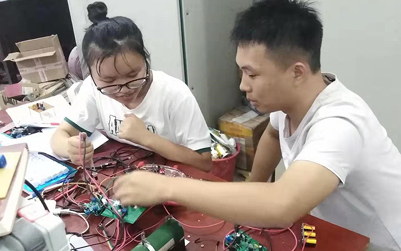 参赛学生在调试电路