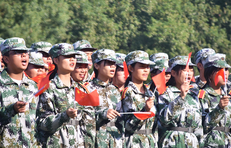 近300名学生拼成“70”图案,十二名军训教官代表合举国旗、团旗、院旗站在图案前方,27个班级的护旗手执班旗站在两侧。习近平总书记在十九大报告中指出:青年兴则国家兴,青年强则国家强。在张曦鸽、翟宏宇、罗静雯三位学生代表的带领下高声朗诵《少年中国说》——“美哉,我少年中国,与天不老!壮哉,我中国少年,与国无疆!”