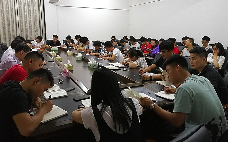 读原著、学原文、悟原理,是党的理论武装工作的优良传统。为继承和发扬党的这一优良传统,搞好“不忘初心、牢记使命”主题教育,深刻领会习近平总书记系列重要讲话精神,推动习近平新时代中国特色社会主义思想往深里走、往心里走、往实里走。9月25日晚上,研究生党总支在办公楼518会议室开展“读原著 学原文 悟原理”的党员主题教育。研究生党总支书记袁文华同去在会上强调,深入学习贯彻习近平新时代中国特色社会主义思想是本次主题教育的根本任务,党员同志要全文认真学习习近平总书记在“不忘初心、牢记使命”主题教育工作会议上的重要讲话、《习近平关于“不忘初心、牢记使命”重要论述选编》、《习近平新时代中国特色社会主义思想学习纲要》和党史、党章等原文、原著,要深刻理解习近平新时代中国特色社会主义思想的伟大意义,切实增强“四个意识”、 坚定“四个自信”、做到“两个维护”。